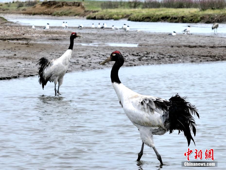圖為(wei) 青海湖入湖河流沙柳河的黑頸鶴。包雷 攝