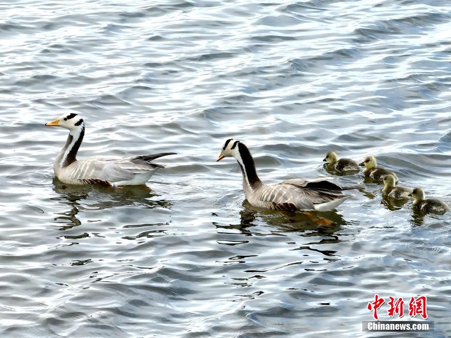 圖為(wei) 斑頭雁“攜家帶口”水中遊弋。包雷 攝