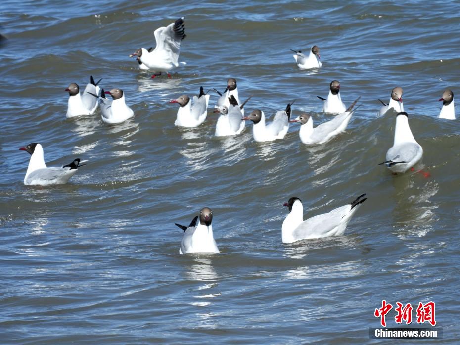 圖為(wei) 青海湖入湖河流沙柳河的棕頭鷗。包雷 攝