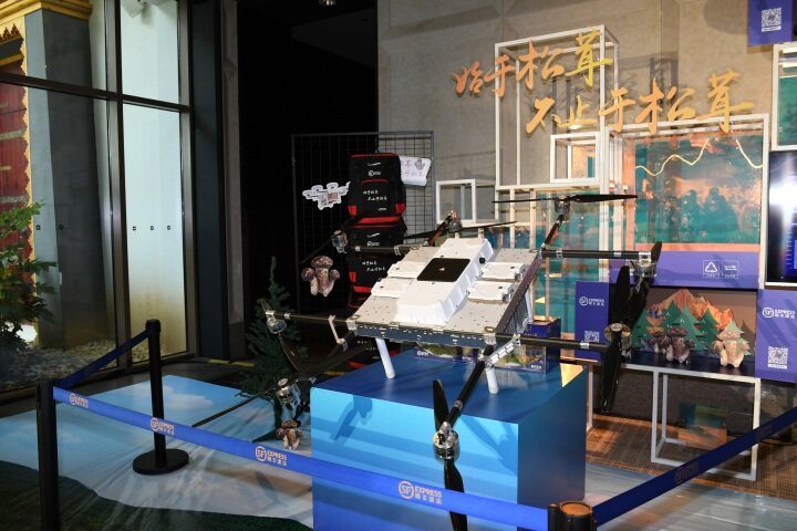 運有鬆茸的無人機從(cong) 產(chan) 區香格裏拉市建塘鎮吉迪村出發,不到20分鍾就被送達位於(yu) 市區香格裏拉大酒店的“始於(yu) 鬆茸、不止於(yu) 鬆茸”第二屆香格裏拉鬆茸論壇暨順豐(feng) 寄遞解決(jue) 方案發布會(hui) 現場,這是順豐(feng) 公司給出的2023年鬆茸寄遞解決(jue) 方案之一。