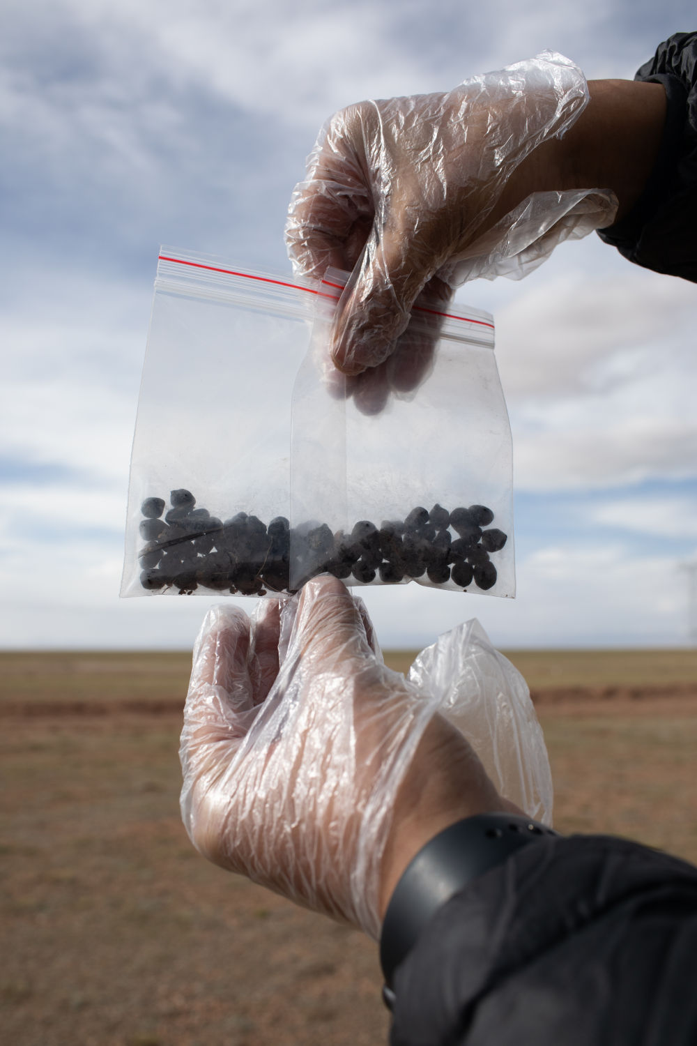 6月15日,王東(dong) 展示剛采集的藏羚羊新鮮糞便樣本。