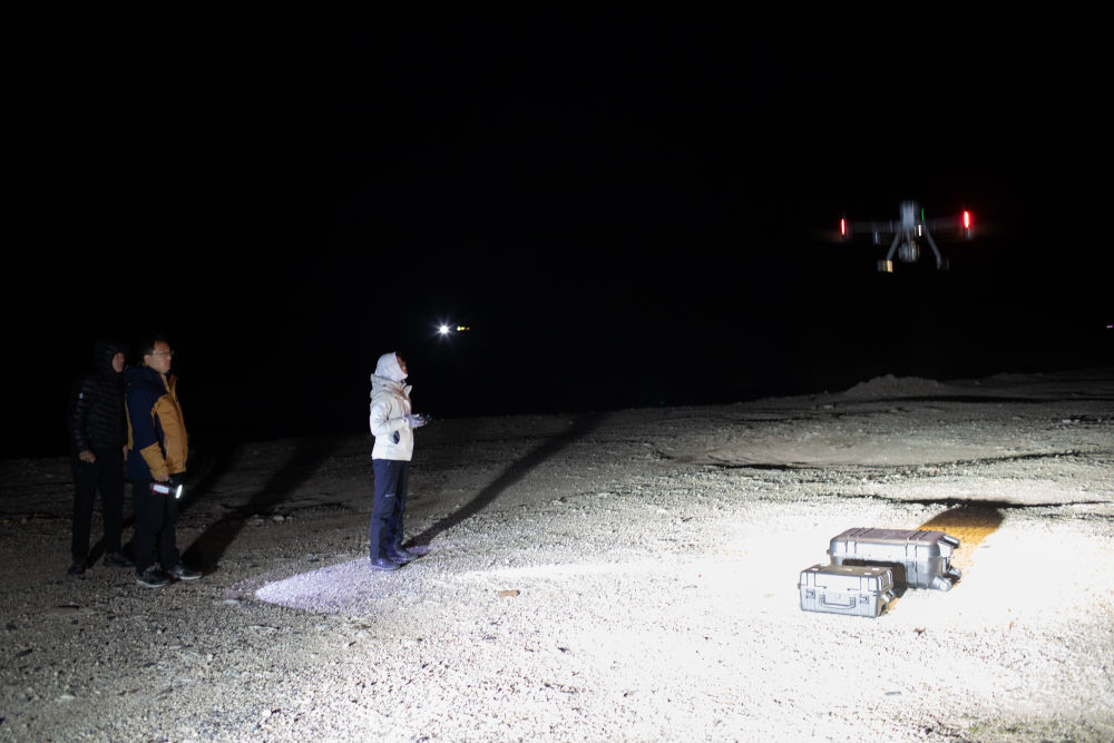 6月16日淩晨,連新明團隊在青藏公路楚瑪爾河大橋附近,使用無人機監測藏羚羊遷徙途中的夜宿地。