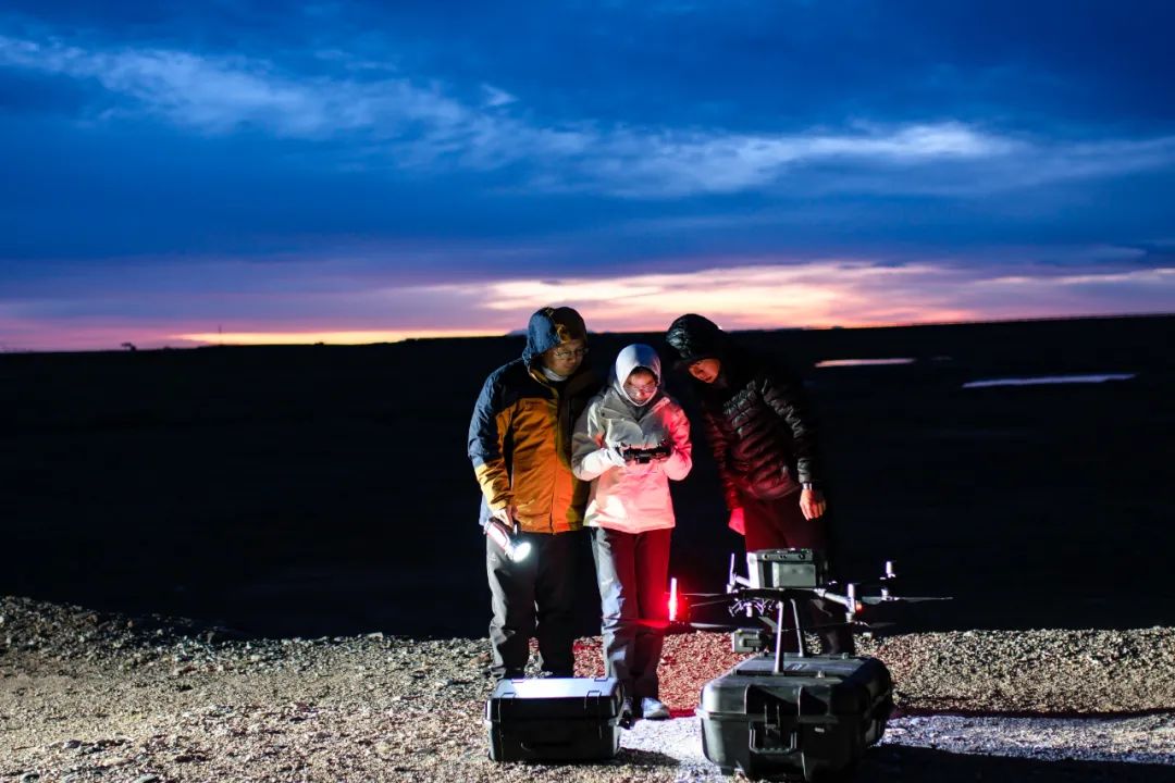6月16日淩晨,中國科學院西北高原生物研究所的連新明團隊在青藏公路楚瑪爾河大橋附近監測藏羚羊遷徙途中的夜宿地。新華社記者 張铖 攝