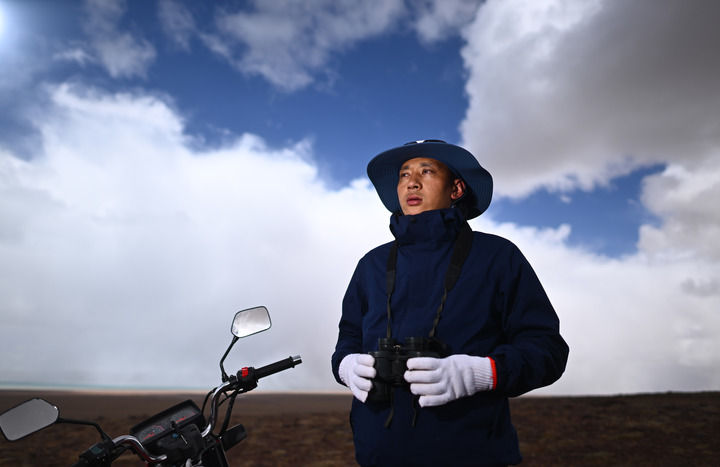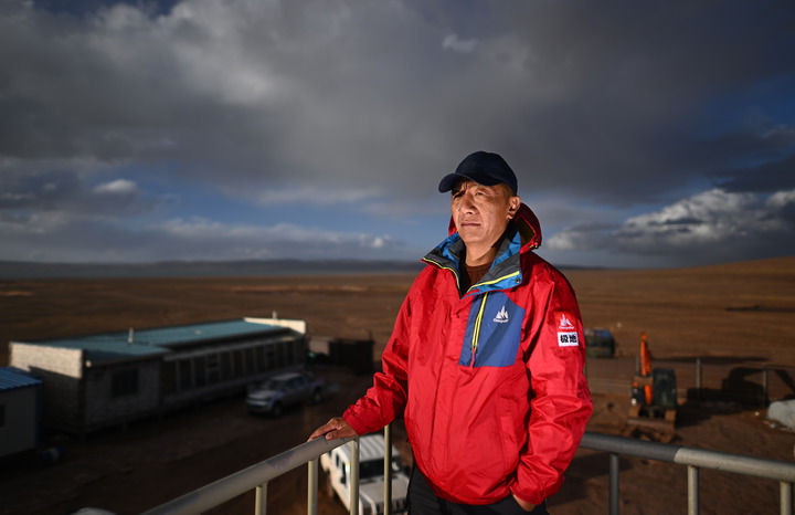 可可西裏管理處卓乃湖保護站副站長郭雪虎在卓乃湖保護站(6月17日攝)。新華社記者 張宏祥 攝