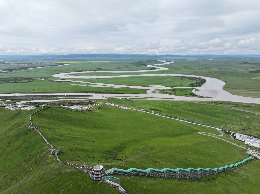 7月14日,遊客遊覽若爾蓋縣黃河九曲第一灣景區。新華社記者 邢拓 攝