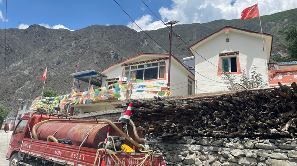 圖為(wei) 四川省阿壩州黑水縣色爾古鎮五裏村新的村落一角。村後的高山上是原村落舊址。新華網 陳穎 攝