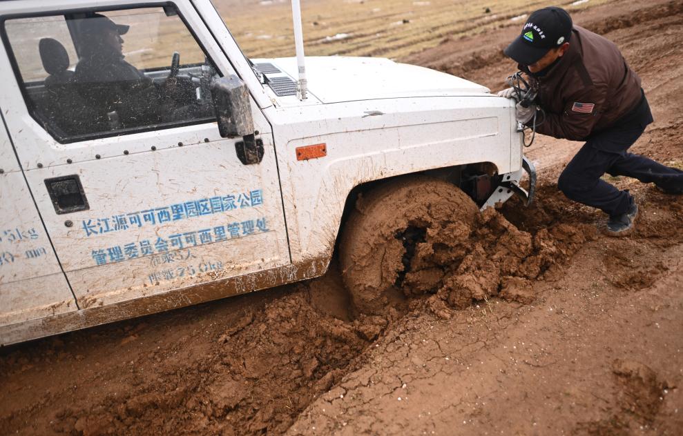 遠處不時傳(chuan) 來狼低沉的嚎叫聲。半個(ge) 多小時後,汽車終於(yu) 被拖出了爛泥坑。隊員們(men) 回到了車裏,臉頰掛滿了汗水。“夏季巡山,陷車是經常的事情。凍土融化後,到處都是爛泥灘,有時候汽車是被大家抬著走的。”