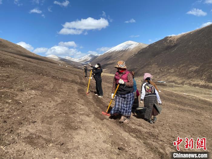 “土壤、植物和動物共同組成了完整的‘地球肌膚’係統,恢複黑土灘需要針對不同生態層次進行科學治理。”彭奎介紹,本次修複在今年四月進行,首先針對土壤進行淺刨溝、坡向垂直橫向條播,為(wei) 播種創造合適的土壤條件,再選用披堿草、老芒麥、中華羊茅、冷地早熟禾、星星草、燕麥、紫羊茅7種本地草種,進行比例混合,再為(wei) 種子覆土,以有利於(yu) 保持種子不被風吹、流失和鳥類“偷吃”,穩定恢複植被生長。