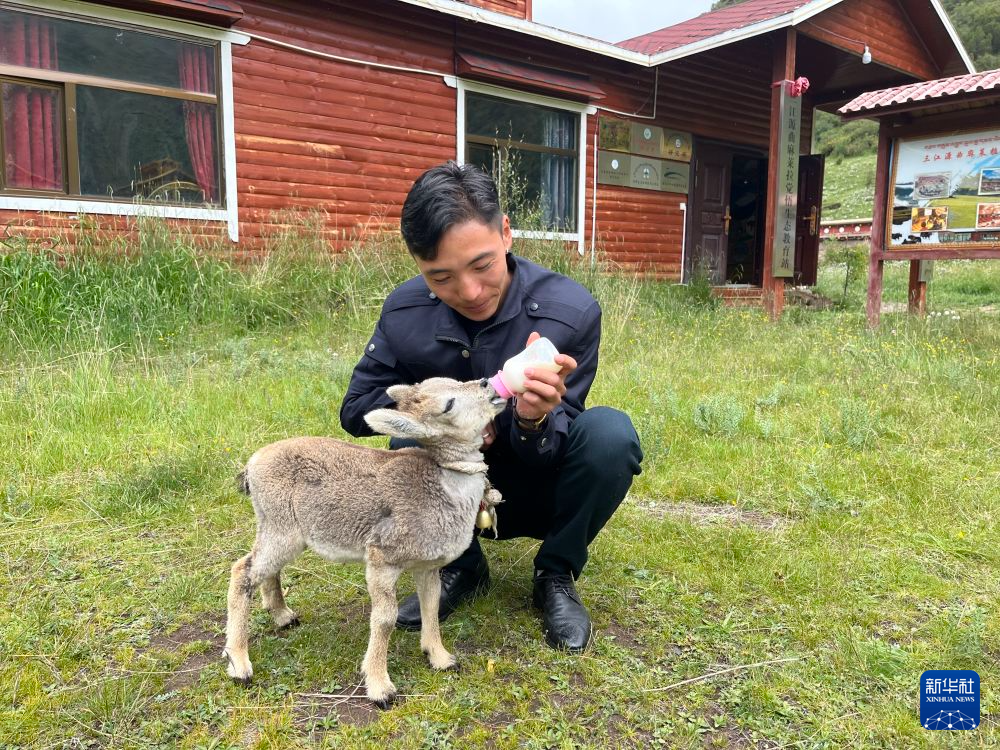 “咩,咩”……門外傳(chuan) 來羊羔的叫聲,旦增拉巴拿著剛剛加熱的奶瓶,向外走去。“這隻羊羔是我們(men) 今年5月從(cong) 野外救助回來的,當時因母羊被雪豹獵食,小羊落單後被我們(men) 發現了。”旦增拉巴將小羊攬在跟前,熟練地給它喂奶,儼(yan) 然一位“奶爸”。
