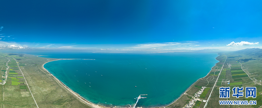這是8月2日拍攝的青海湖。(無人機全景照片)新華網 郭勇良 攝