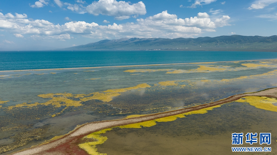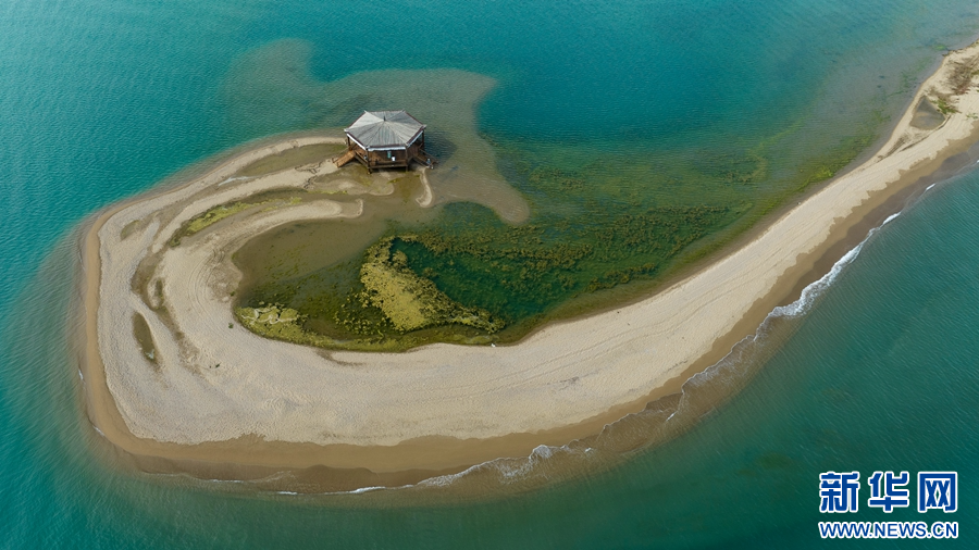 這是8月2日拍攝的青海湖二郎劍景區二郎劍半島一角。(無人機照片)新華網 郭勇良 攝