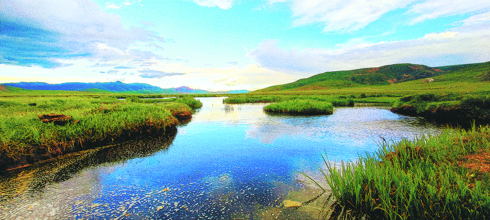 藍天白雲(yun) 下的隆寶灘國際重要濕地寧靜而美麗(li) 。