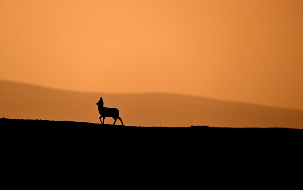 一隻雌性藏羚羊在可可西裏卓乃湖區域活動(6月18日攝)。新華社記者 張宏祥 攝