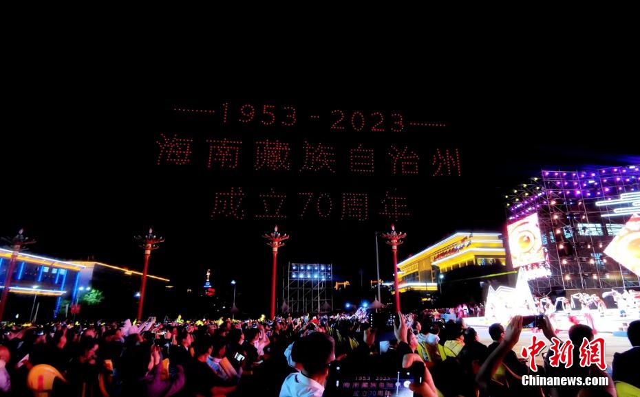 7月31日晚,青海省海南藏族自治州,800餘架無人機騰空而起,以夜空為畫布,以燈光為畫筆,組成“光伏羊”“揚帆起航”“防沙治沙”“紮西德勒”等字樣,慶祝青海省海南藏族自治州成立70周年。[詳細] -