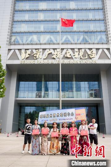圖為(wei) 孩子們(men) 在北京廣播電視台前合影留念。嘎瑪西周 供圖