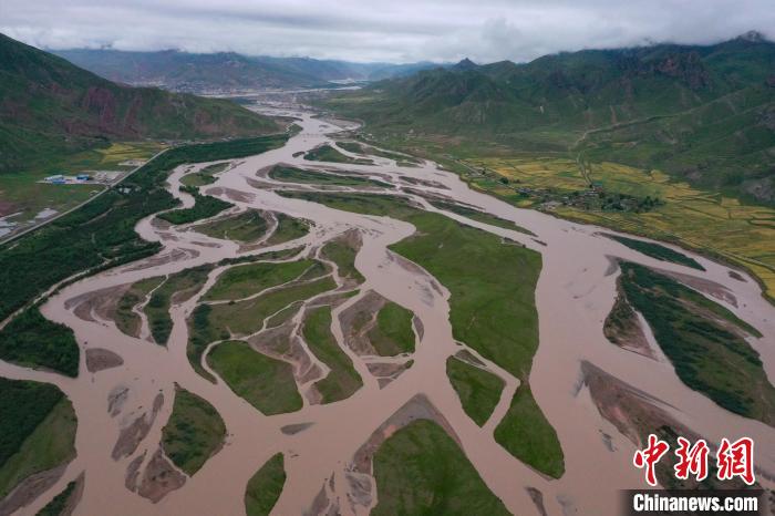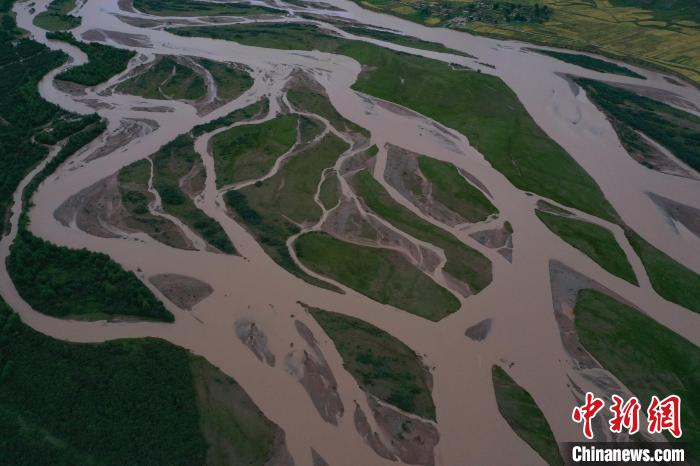 8月22日,航拍青海省玉樹藏族自治州囊謙縣境內(nei) 的紮曲河網狀水係。紮曲河是瀾滄江上遊主要幹流之一,縱橫交錯的河水在群山中蜿蜒流淌,形成獨特的高原景觀。
