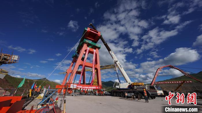 圖為(wei) 瑪爾擋水電站首台壩頂門機順利完成吊裝。趙成悅 攝
