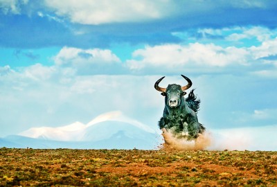 奔跑在三江源的野犛牛。樊向珍 攝/光明圖片
