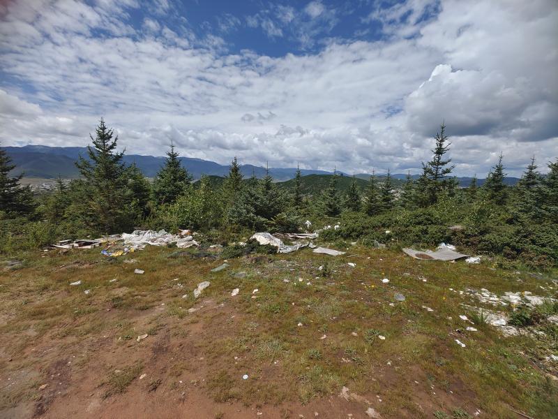 五鳳山登山健身步道全長約13公裏,沿線森林茂密,溪水潺潺,景色優(you) 美,登高而上可遠眺石卡雪山、香格裏拉城區全景,穿越埡口、牧場,是市民健身休閑的好去處。尤其夏季以來,香格裏拉氣候舒適,每到周末,不少人選擇走進山林露營小憩、采摘野生菌,感受大自然的樂(le) 趣,然而,同他們(men) 一同闖入林中的還有各種被丟(diu) 棄的垃圾,這些不文明的現象也成為(wei) 了美景中的“內(nei) 傷(shang) ”。