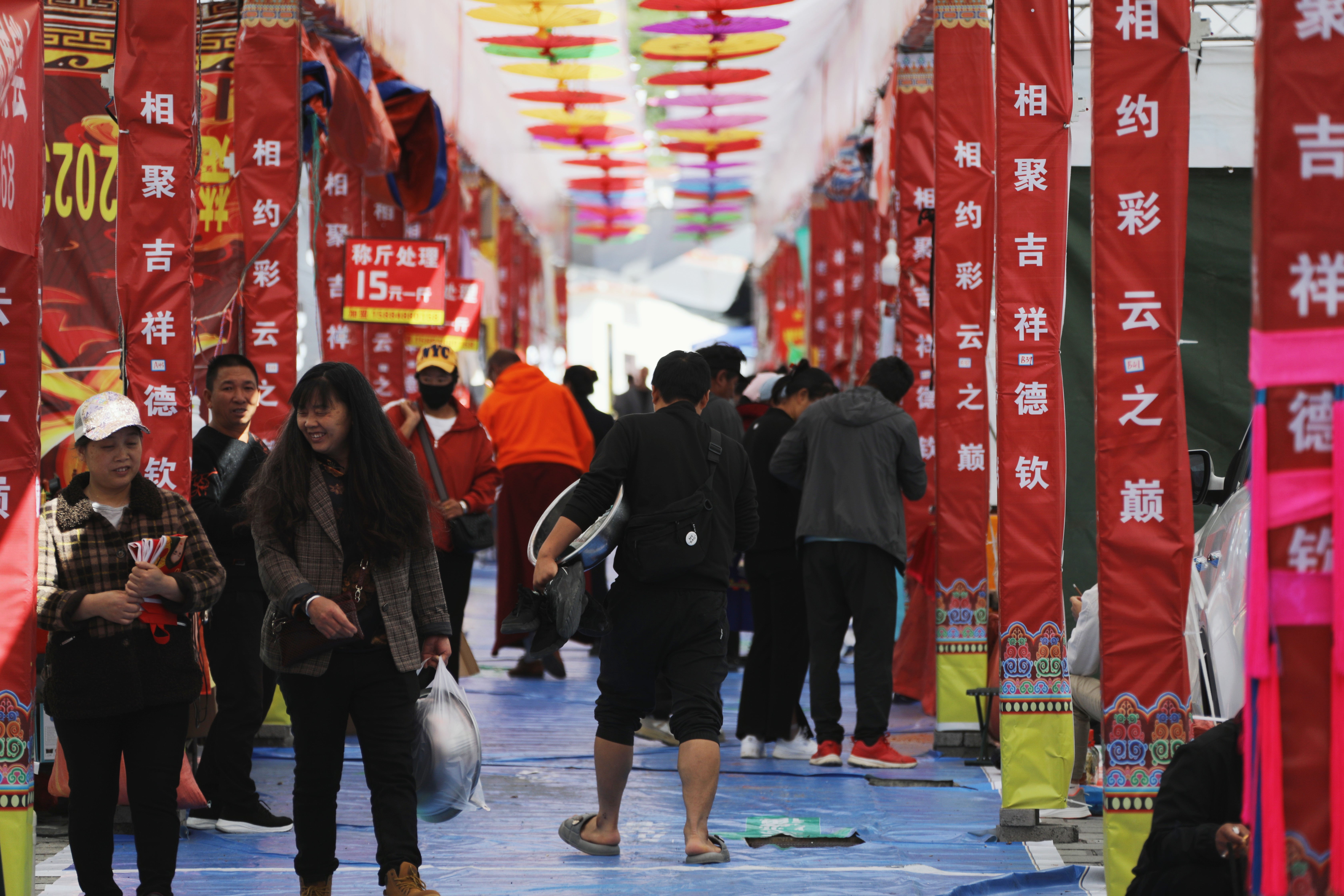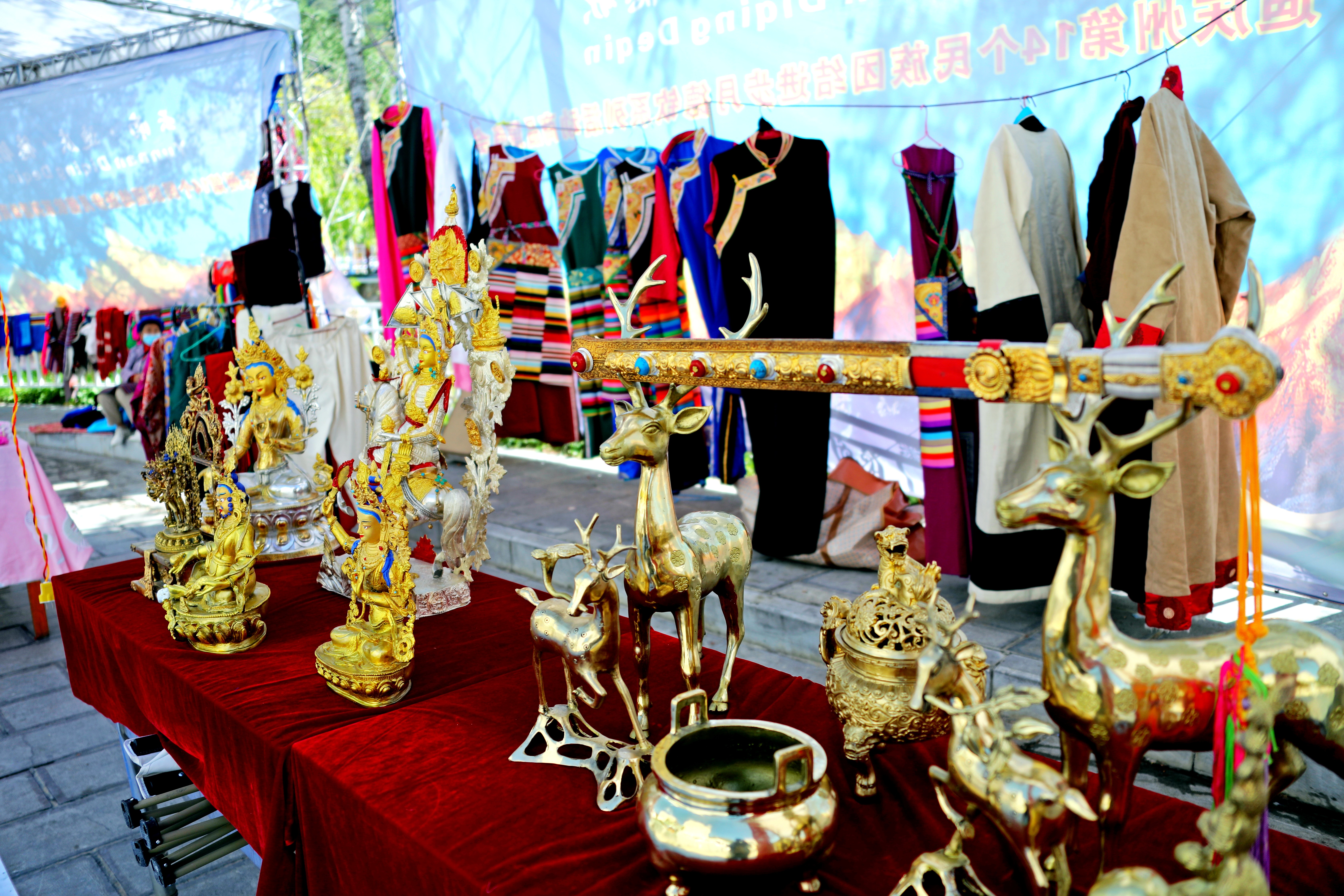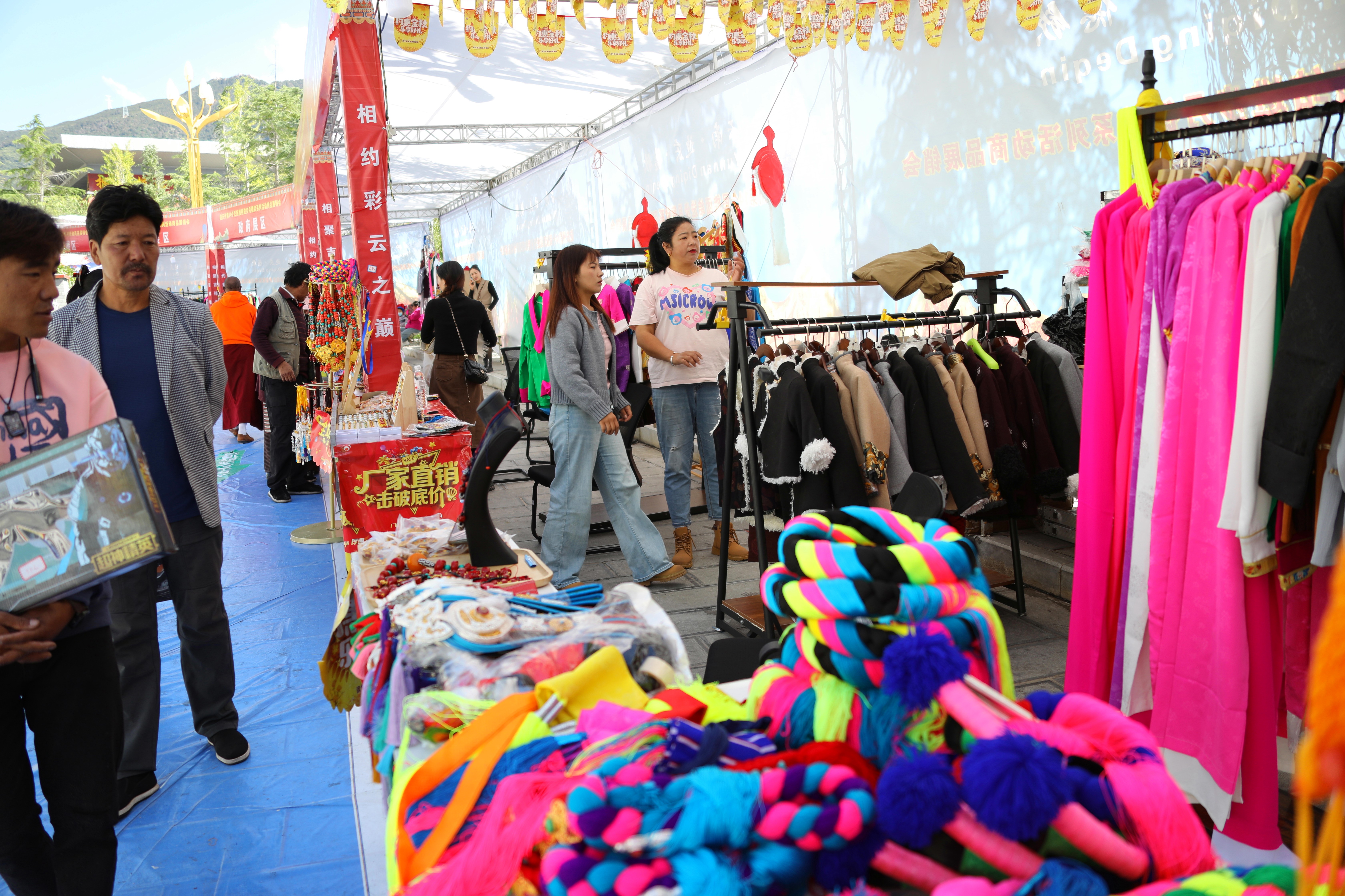 本次展銷會(hui) 有來自德欽縣的24家企業(ye) 和近百家外地客商參加,將從(cong) 9月1日持續到12日。本地農(nong) 特產(chan) 品包括銀製品及木碗等工藝品、藏族服飾、特色農(nong) 特產(chan) 品。外地客商帶來的各種生活用品一應俱全,還有服裝供大家挑選、美食供大家品嚐。臨(lin) 時搭建起來的遊樂(le) 場更是深受孩子們(men) 的歡迎。