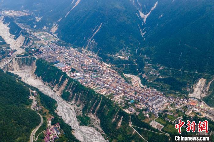 航拍加快災後重建的瀘定磨西鎮全景。中新網記者 劉忠俊 攝