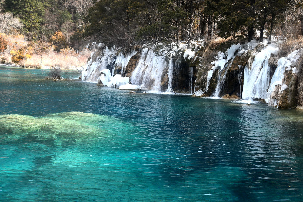 隆冬時節,在世界自然遺產地九寨溝,皚皚白雪為她披上一身銀裝,淡藍色的冰瀑也增添了幾分靜謐。冬日陽光明媚,川西高原上湛藍的高山湖泊與白雪交相輝映,讓被譽為“童話世界”的九寨溝更加迷人。[詳細]