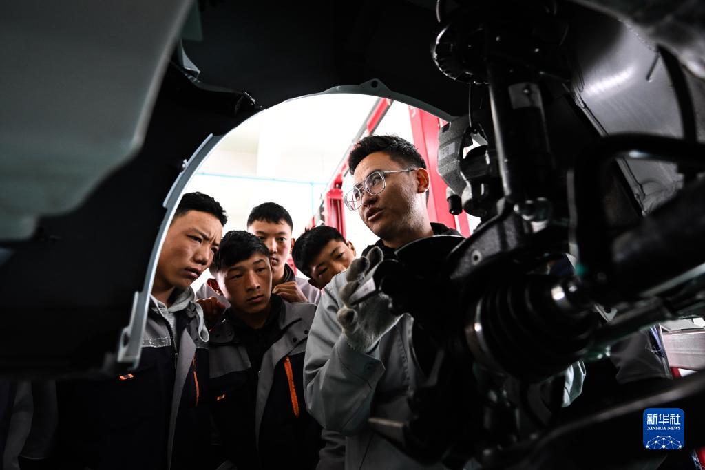9月8日,在果洛藏族自治州職業(ye) 技術學校,汽車運用與(yu) 維修專(zhuan) 業(ye) 學生在實訓課程上學習(xi) 。新華社記者 張龍 攝