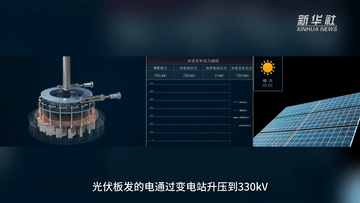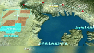 光伏板發的電通過變電站升壓到330KV,經過50多公裏長的高壓輸電線路輸送到龍羊峽水電站,水電站再根據總的發電任務和光伏實時發電量調節水電,實現“削峰填穀”,最終並網向外輸送。
