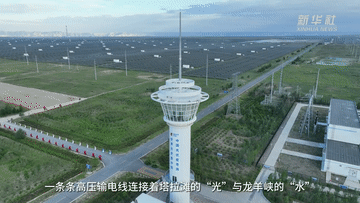 一條條高壓輸電線連接著塔拉灘的“光”與(yu) 龍羊峽的“水”,實現塔拉灘上經濟效益和生態效益的共贏。