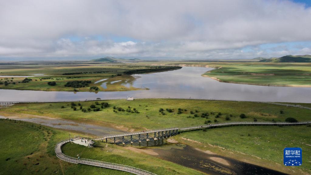 這是8月22日在四川省阿壩藏族羌族自治州若爾蓋縣唐克鎮拍攝的黃河九曲第一灣景色(無人機照片)。新華社記者 王乙傑 攝