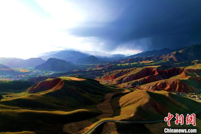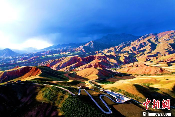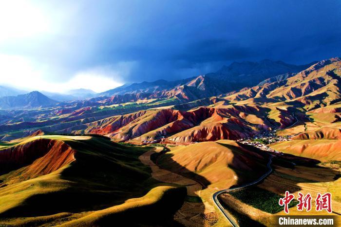 圖為(wei) 航拍祁連山腹地色彩斑斕。薛蒂 攝