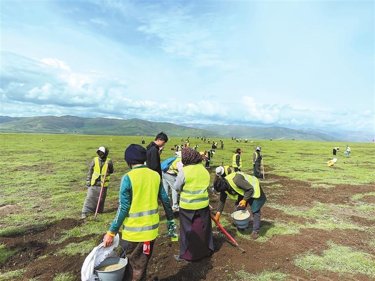 2021年,瑪曲縣全麵啟動了甘南黃河上遊水源涵養(yang) 區山水林田湖草沙一體(ti) 化保護和修複工程項目。為(wei) 期3年的項目,對礦山、森林、草原、濕地等進行係統修複,生態保護修複總麵積達13.39萬(wan) 公頃。