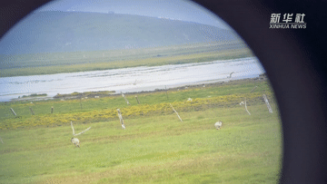 甘肅尕海則岔國家級自然保護區管護中心尕海保護站站長香毛吉(左一)和同事在保護區內(nei) 用望遠鏡觀測野生動物。 新華社記者 陳斌 攝