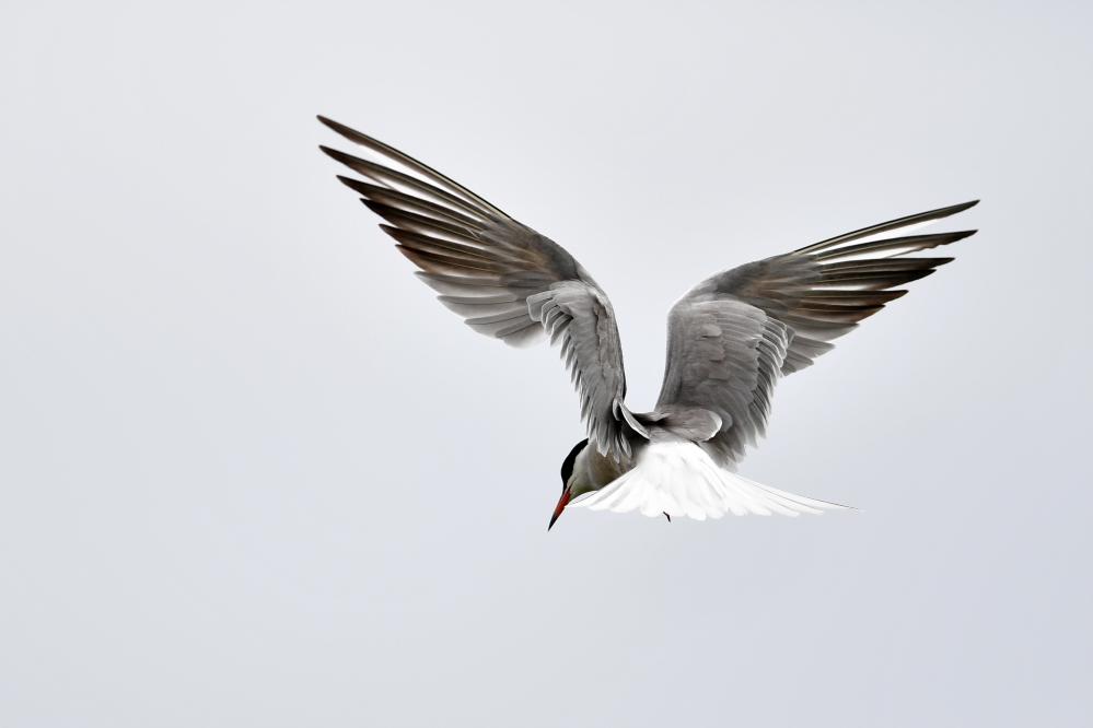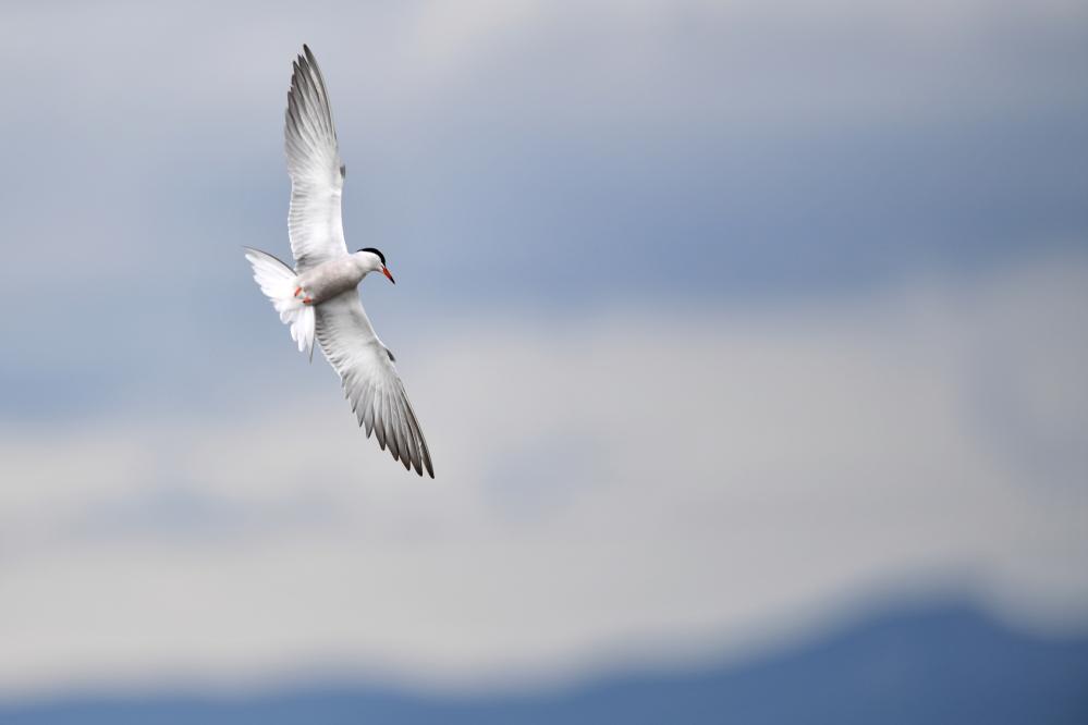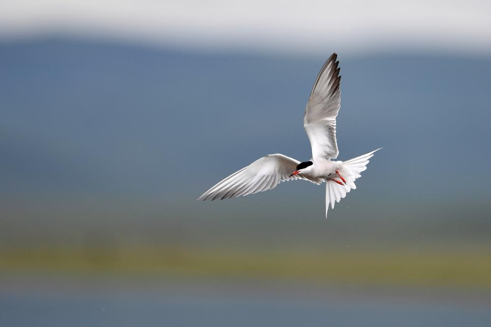 一隻燕鷗在甘肅尕海則岔國家級自然保護區的尕海濕地上飛翔。 新華社記者 陳斌 攝