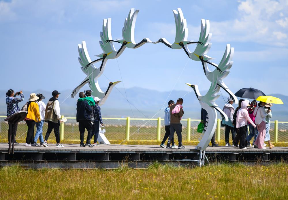 圖為(wei) 遊客在四川省阿壩州若爾蓋縣花湖景區觀光。新華社記者王曦 攝