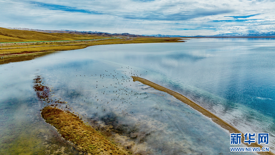 秋日清晨,位於(yu) 有“千湖之縣”之稱的青海省果洛藏族自治州瑪多縣境內(nei) 的冬格措納湖湖水湛藍、天空遼闊,湖畔草地綠黃交融,靜美迷人。