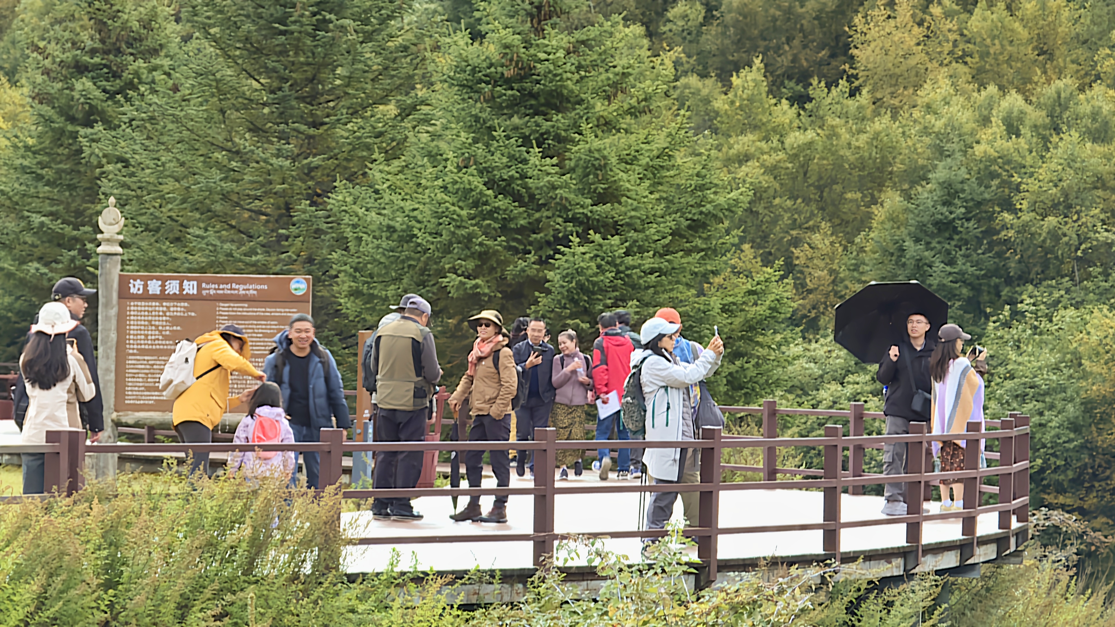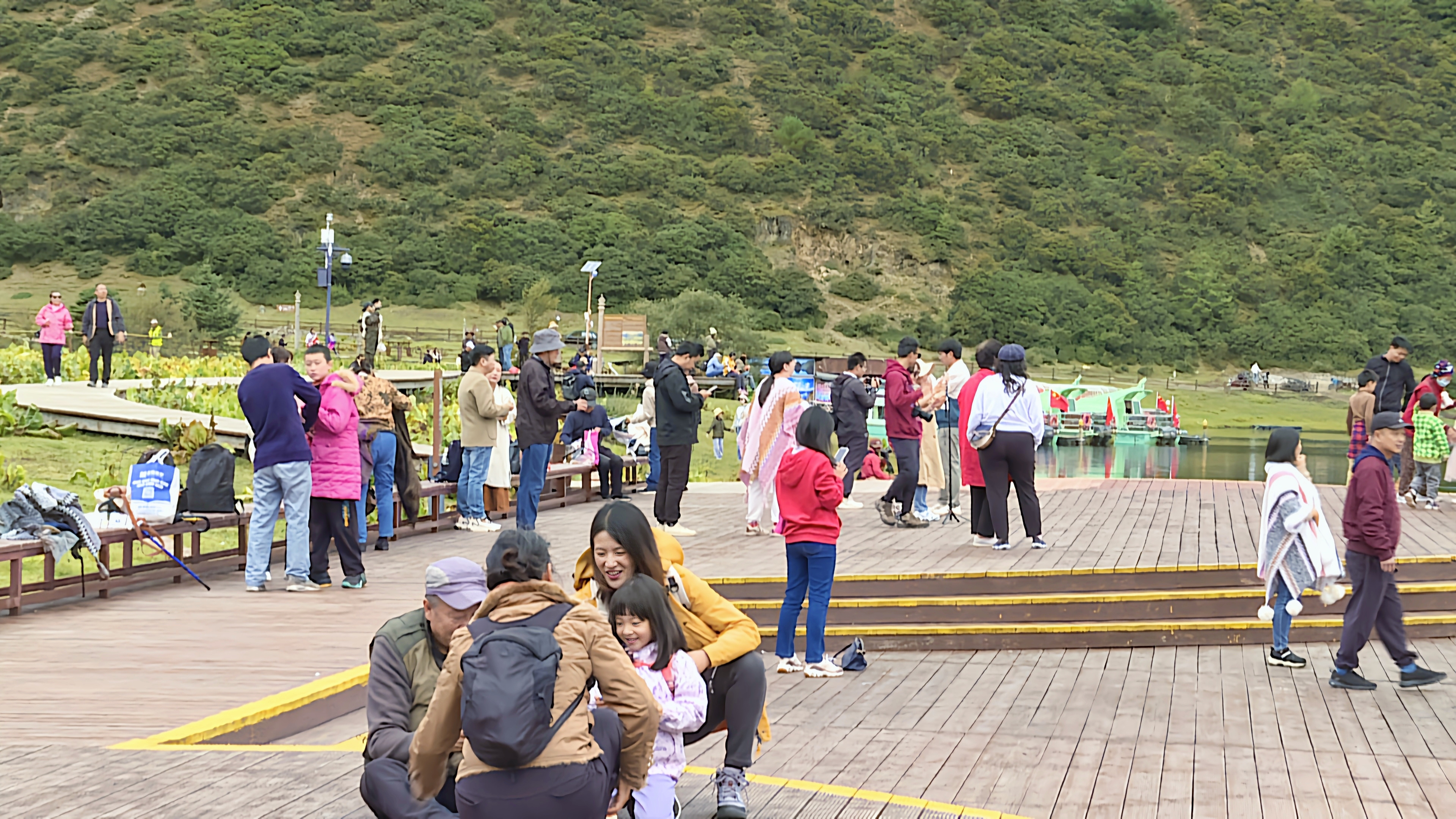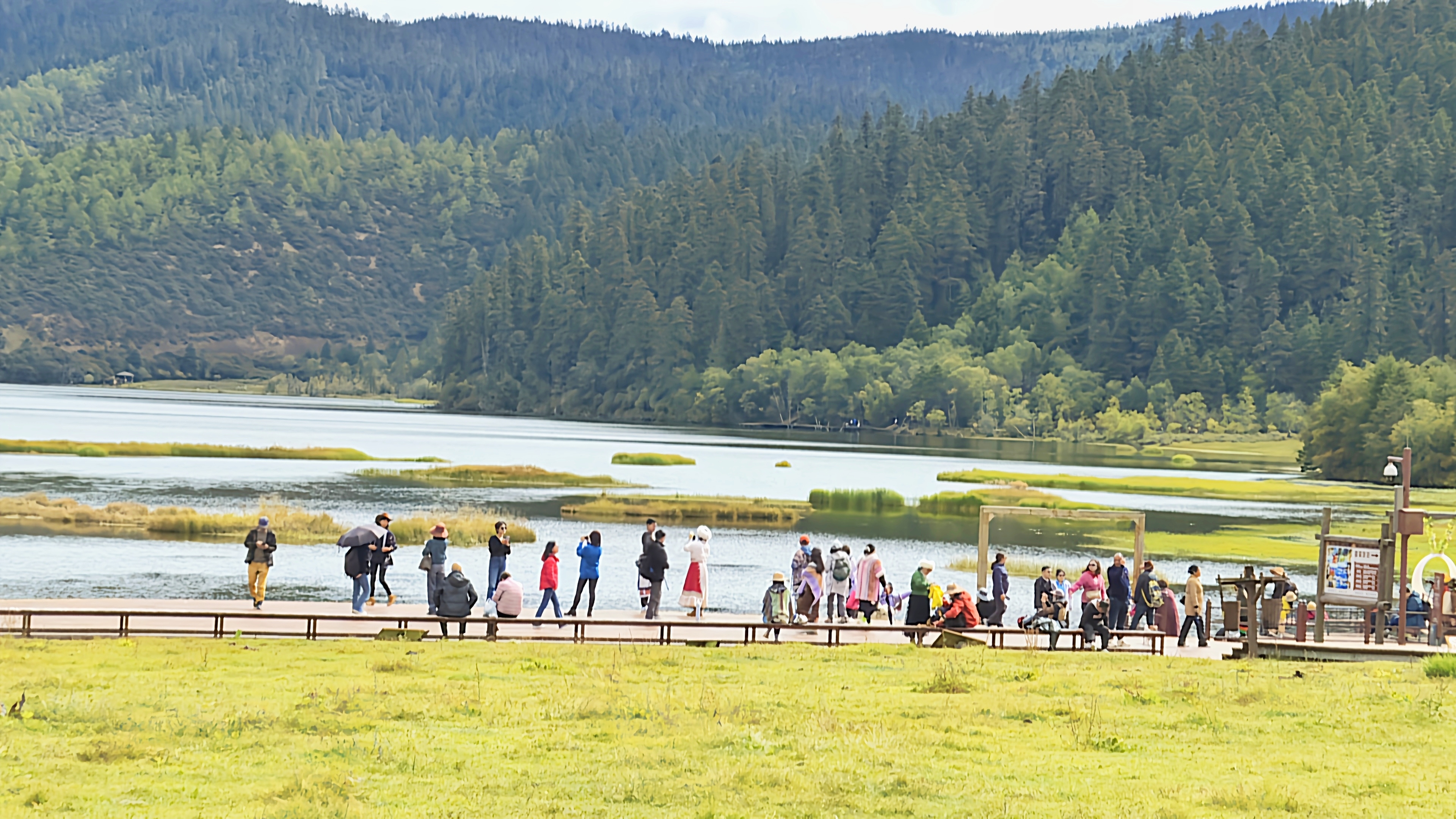秋日的普達措國家公園層林盡染、色彩斑斕,高山草甸、原始森林與(yu) 湖泊濕地構成了一幅幅美麗(li) 的畫卷,屬都湖棧道上人群熙熙攘攘。“我是第一次來香格裏拉旅遊,香格裏拉給我的感覺就是,這裏的生態環境保護得很好,綠水青山,很值得來遊玩。”遊客宋女士表示。