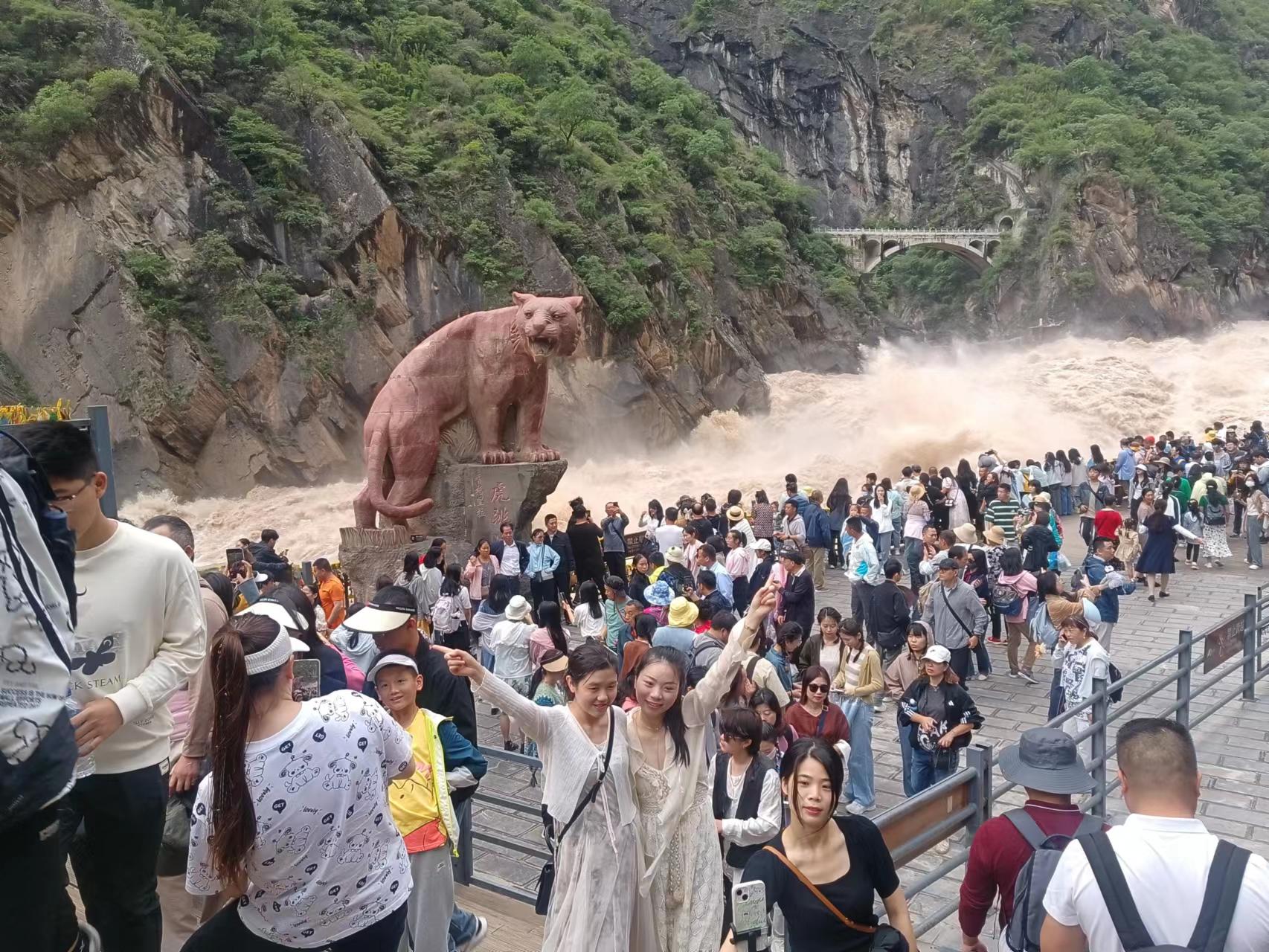 日前,虎跳峽景區遊人爆滿,各項旅遊接待指標全麵提升。“目前遊客人數還在持續攀升,預計國慶節中期到達頂峰。”景區工作人員介紹道。假期前三天景區已接待遊客3.11萬(wan) 人。