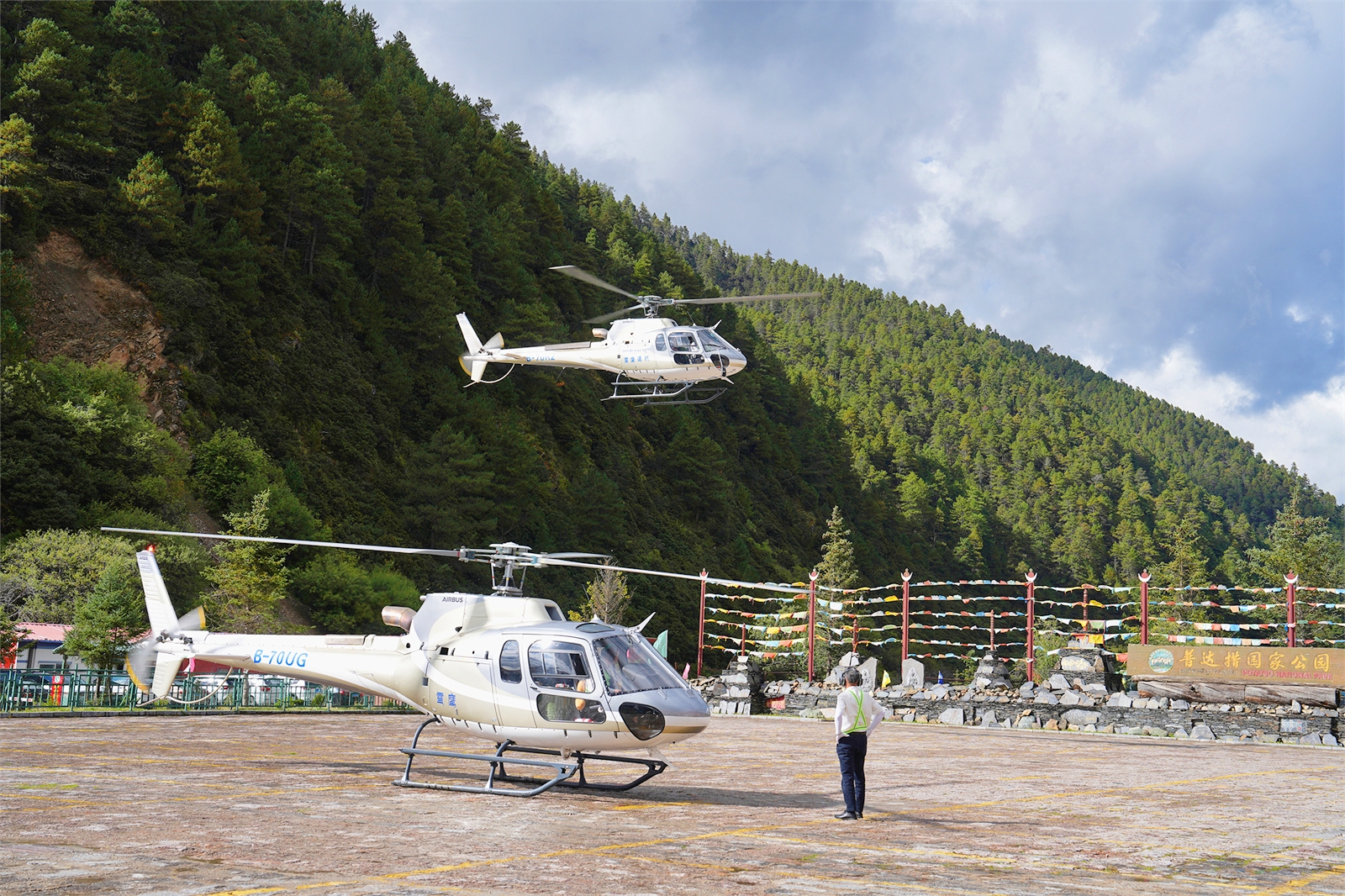 國慶假期期間,香格裏拉普達措國家公園新增直升機和熱氣球低空觀光體(ti) 驗項目,讓遊客從(cong) 高空俯瞰神秘而壯麗(li) 的普達措公園美景。