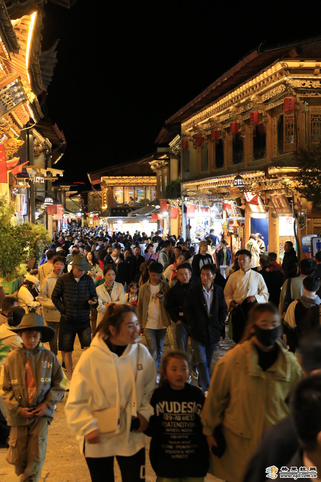 華燈初上,香格裏拉市城區便化為(wei) 了一片歡樂(le) 的海洋,煙花燦爛的五彩哈達藏迪演繹公園,民族歌舞不斷的月光廣場,熙熙攘攘的獨克宗古城小道,煙火氣十足的國慶商品展銷會(hui) ……讓香格裏拉的夜景變得別樣迷人。