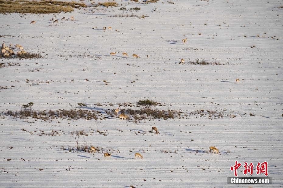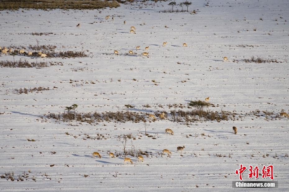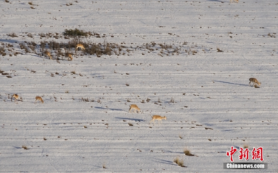 10月12日,成群普氏原羚在青海湖北岸雪中覓食、漫步。當日,在青海湖北岸的青海省海北藏族自治州剛察縣哈爾蓋“羚羊小鎮”,成群的普氏原羚在雪中覓食、漫步。普氏原羚是世界瀕危物種、國家一級重點保護野生動物,現僅(jin) 分布於(yu) 青海湖周圍,成為(wei) 青海湖獨有的珍稀有蹄類動物和旗艦物種。中新社記者 馬銘言 攝