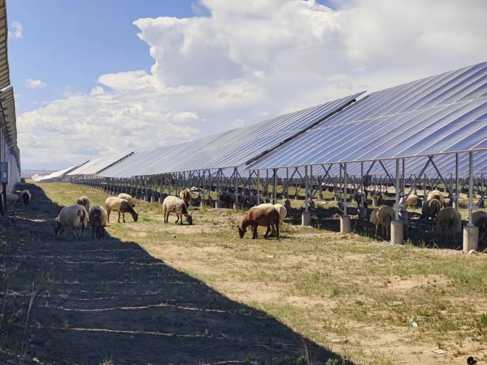 “牧光儲(chu) ”項目依托當地豐(feng) 富的農(nong) 牧資源,采用光伏板上發電,光伏板下種草、牧羊的方式,構建新能源開發與(yu) 畜牧業(ye) 協同發展的“牧光互補”新模式。