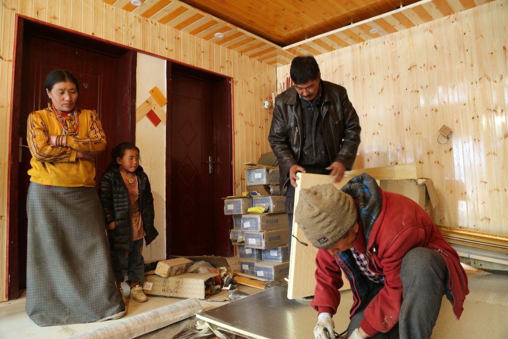 青海省果洛藏族自治州瑪多縣黃河鄉(xiang) 果洛新村牧民正在家中安裝地暖。(受訪者供圖)