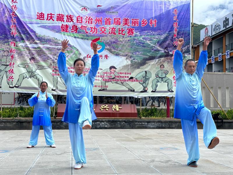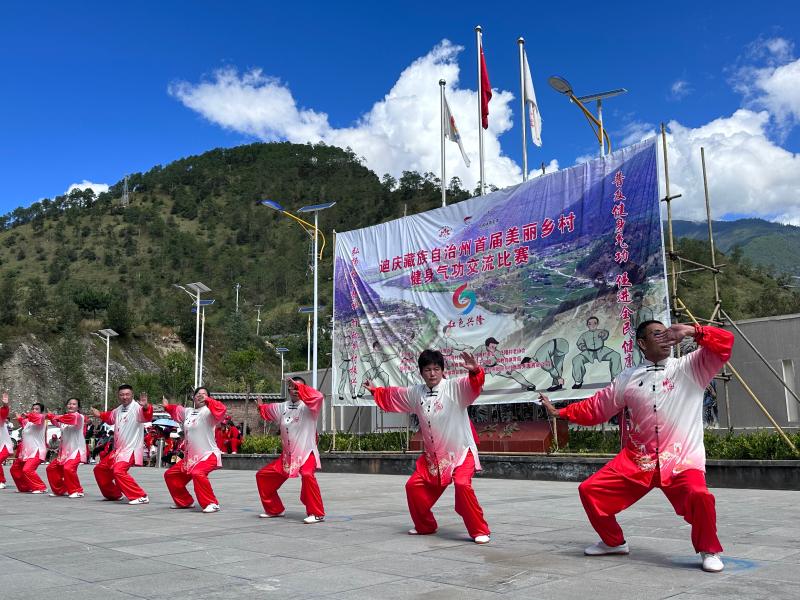 迪慶藏族自治州首屆美麗鄉村健身氣功交流比賽在香格裏拉市金江鎮興隆村紅色研學基地開賽