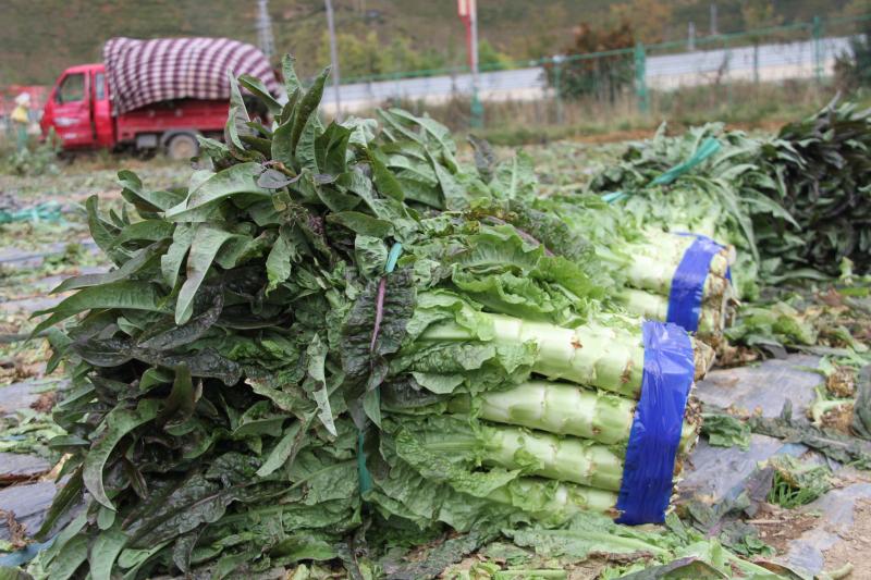 時下,正是萵筍成熟收獲的季節。在香格裏拉市解放村乃日村民小組的萵筍地裏,一棵棵青翠欲滴的萵筍把土地染得綠意濃濃,豐(feng) 收的喜悅撲麵而來。菜農(nong) 正在采收萵筍,收割、擇摘、打捆、稱重、搬運、裝車,一套流程下來一氣嗬成,現場呈現出一派繁忙熱鬧的景象。