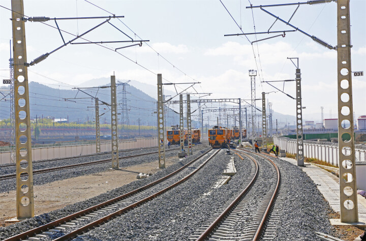 近日,記者在滇藏鐵路麗(li) 香段香格裏拉站看到,現場正在進行大機搗固作業(ye) ,工人們(men) 正緊抓施工進度,高效組織施工作業(ye) ,全力以赴保障全線順利開通運營。