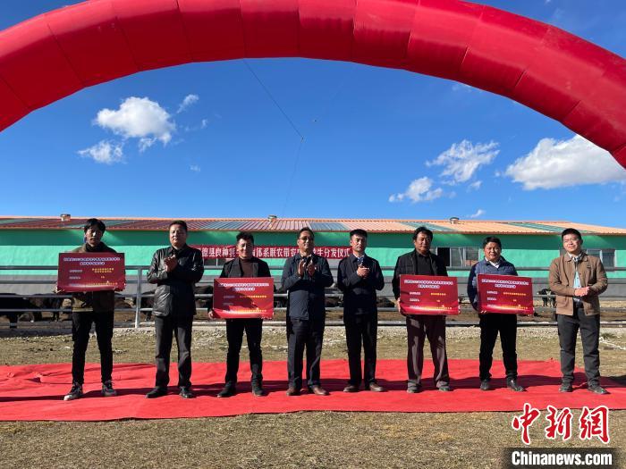 圖為(wei) 同德縣犛牛產(chan) 業(ye) 園為(wei) 牧民分發良種牛犢儀(yi) 式現場。陳宗淇 攝