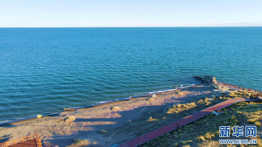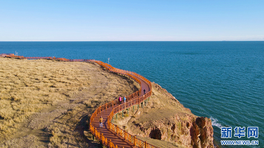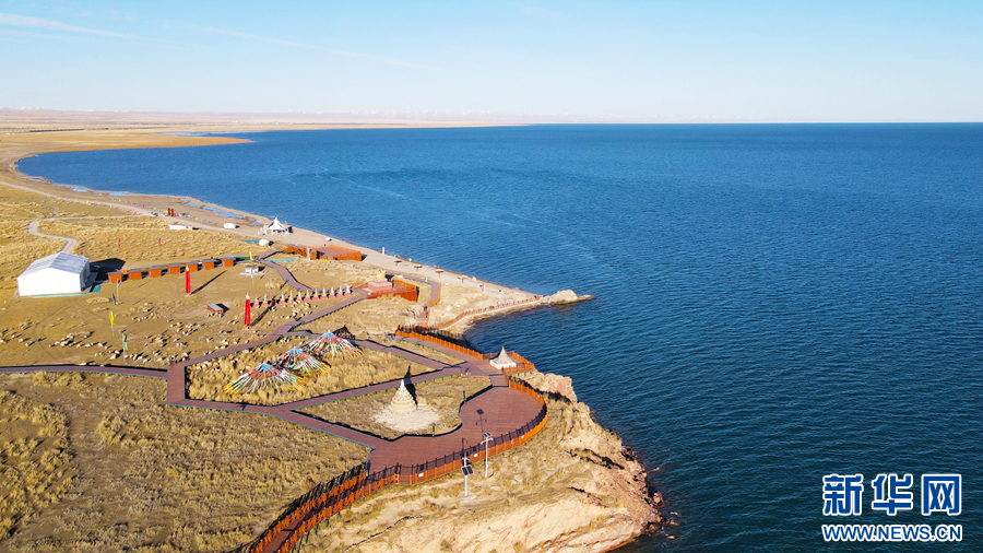 時值深秋,在位於(yu) 青海湖北岸的青海省海北藏族自治州剛察縣泉吉鄉(xiang) 聖泉灣生態體(ti) 驗區,天高雲(yun) 淡、湖水湛藍,如夢如幻的秋日美景令人流連忘返。