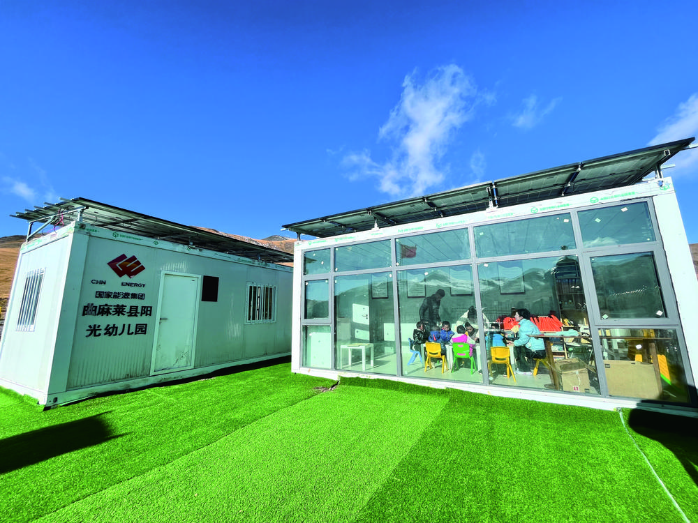 “迷你”幼兒(er) 園由兩(liang) 個(ge) 集裝箱組成,箱頂裝有太陽能光伏係統,可以滿足供暖、照明等需求。兩(liang) 個(ge) 集裝箱分別是孩子們(men) 的教室和功能室。溫暖的陽光透過一扇大大的落地窗照進教室,孩子們(men) 和老師在裏麵一起看書(shu) 學習(xi) 做遊戲,雖然室外寒風凜冽,但教室內(nei) 卻非常溫暖。