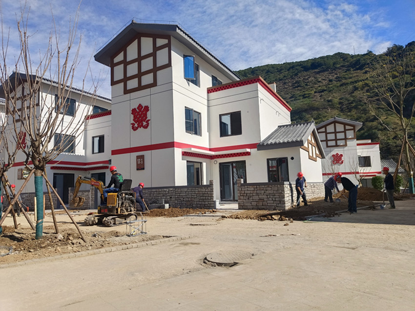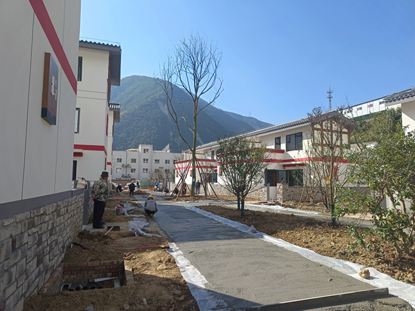 11月5日,記者走進瀘定縣德威鎮奎武村“9·5”瀘定地震災後重建集中安置點,隻見一幢幢繪有“如意結”和穿鬥裝飾等瀘定傳(chuan) 統建築元素以及“瀘定紅”“紅飄帶”等民族特色的安置房沿大渡河畔依次排開,一條條寬敞平整的水泥硬化道路將這些風貌一致、戶型合理、結構安全的安置房屋串聯起來。幾十名工人正在安置點內(nei) 忙碌,有的在鋪設路麵、有的在栽種綠化樹、有的在搬運廢渣……,拿到鑰匙的部分村民正在進行室內(nei) 裝修,現場一派繁忙景象。